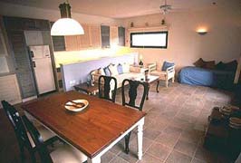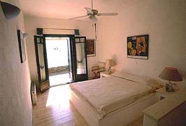 Villa Maria At 93 sq.m. villa Maria features two bedrooms, one designer bathroom, a kitchen with full cooking facilities, a living room with a view of the Kastellakia bay waters and immediate access to a large terrace area outside. Villa Maria can accommodate up to 5 people. The master bedroom has a queen size built-in bed (160x205cm) and the secondary bedroom two single beds (90x200). There is a couch and pull out bed in the living room for a fifth person. |